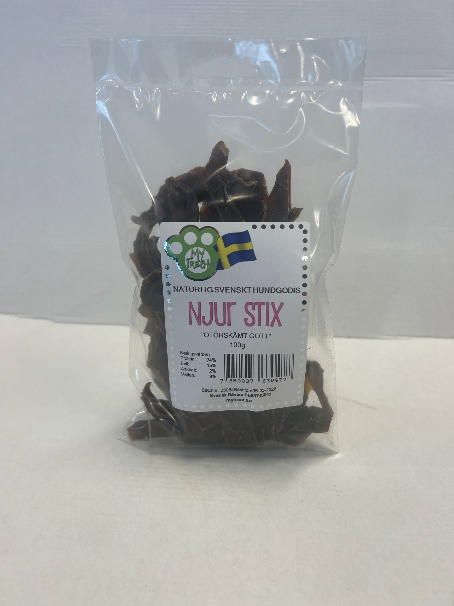 Njure som är skivad i stavar och lätt att bryta ca 10cm i längd med mycket hög smakrikhet. Handgjort, Svensk råvara, Naturliga smakämnen, Fritt från spannmål och färgämnen, Inga konstgjorda smakämnen eller konserveringsmedel.
