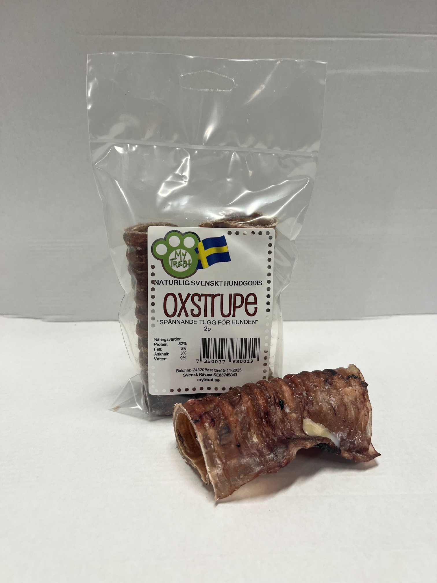 Oxstrupe är ett helt naturligt. Här finns mycket smak och en vis seghet i strupen. Kan variera i storlek men ca 20-30cm.
